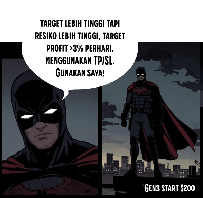 ● Jika target profit dibawah 2% maka tidak dikenakan biaya sharing profit (cukup membayar VPS saja sebesar 200rb) ● Jika bulan ini kondisi minus maka gratis recovery selama 1 bulan dimana mencakup gratis biaya VPS dan tidak ada sharing profit, dan trade recovery ini hanya berlaku 1 bulan saja, setelah itu dikenakan biaya VPS dan sharing kembali ● Biaya VPS hanya sebesar Rp 200.000 dan sharing profit 27% perbulan.