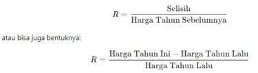 Contoh seperti “R 2024 = 0.112652” menunjukkan perhitungan rasio perubahan relatif, mirip dengan return rate atau growth ratio. Fungsi ini digunakan untuk mencari tingkat perubahan proporsional, bukan absolut.